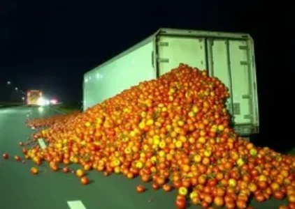 Caminhão carregado com tomate tomba em Itapetininga e causa feridos.